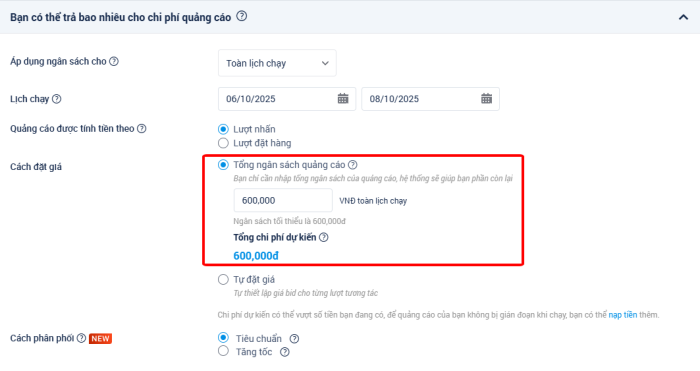 - Nhà quảng cáo cân nhắc thiết lập độ dài chiến dịch ít nhất là 7 ngày để hệ thống tối ưu phân phối.