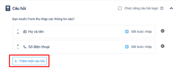 Bước 2: Tại phần Câu hỏi, nhà quảng cáo nhấn chọn nút Thêm câu hỏi mới