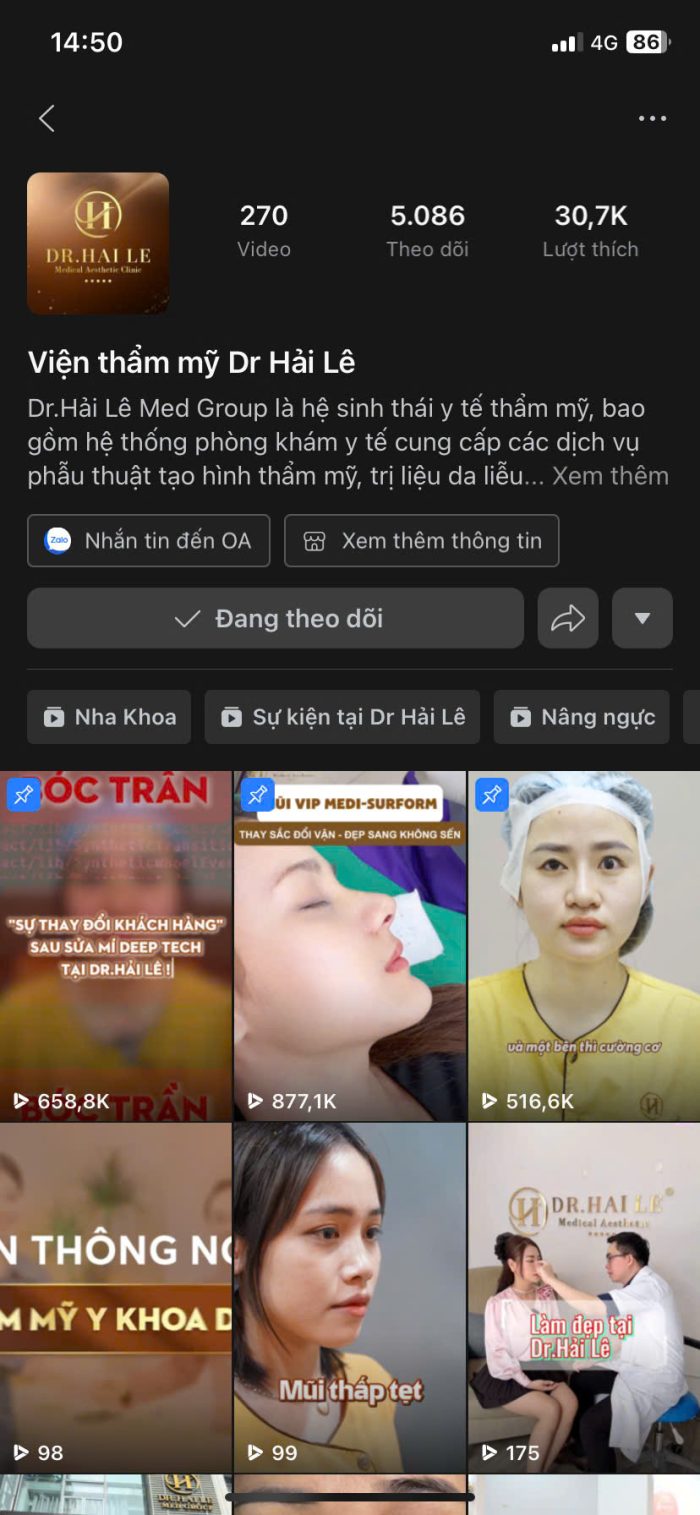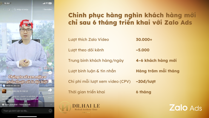 Kết quả là kênh Zalo Video không chỉ mang tính “giới thiệu dịch vụ”, mà thực sự trở thành thư viện niềm tin – nơi khách hàng thấy được năng lực và giá trị cốt lõi của Dr. Hải Lê và đội ngũ bác sĩ.