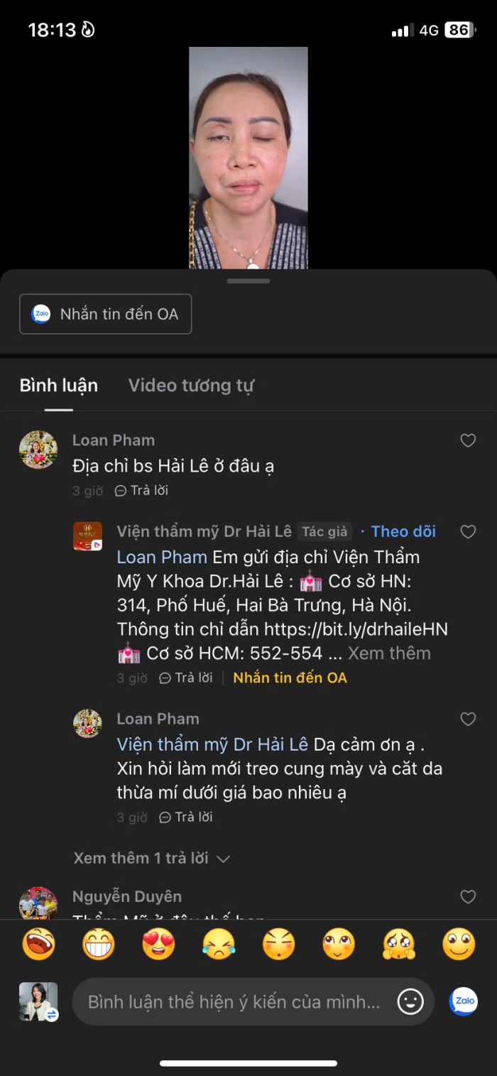- Vai trò sau triển khai: Zalo OA trở thành “trụ sở số” của Viện thẩm mỹ. Toàn bộ thông tin quan trọng – dịch vụ, khuyến mãi, thông báo, phản hồi CSKH – được tập trung tại đây. Khi khách hàng để lại bình luận dưới video, khách hàng được kết nối trực tiếp với đội ngũ tư vấn thông qua Zalo OA
